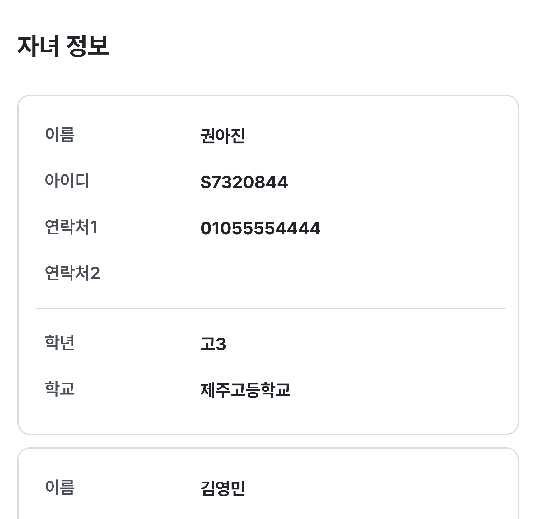 학생 정보 등록과 형제자매 등록을 간편하게 지원하여