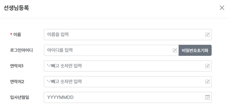 선생님 등록 및 퇴직 처리를 간편하게 해보세요.