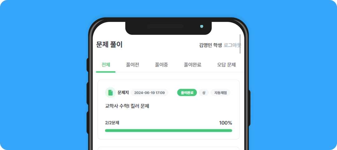 선생님이 출제하신 문제지를 모바일에서 간편하게 풀어보세요.