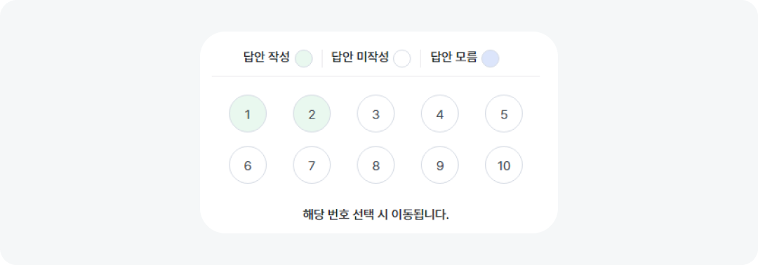 - 이전 문제와 다음 문제 버튼을 선택해야만 문제가 이동돼요.